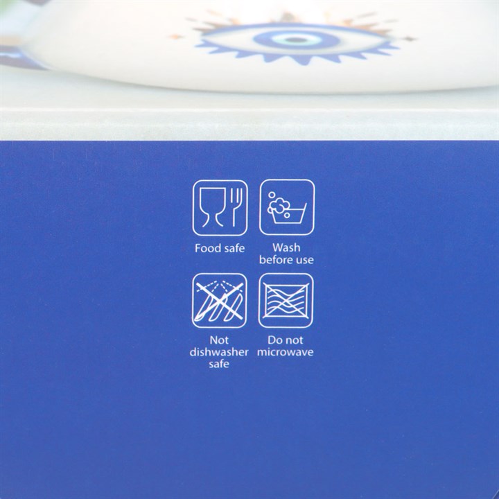 This white rounded mug features a striking All Seeing Eye design with metallic gold details. Also known as the Evil Eye this talisman offers good luck and protection from misfortune. Enjoy a morning cuppa in this mug and you'll be radiating positive vibes for the rest of the day! 500ml. Not suitable for dishwasher or microwave use.