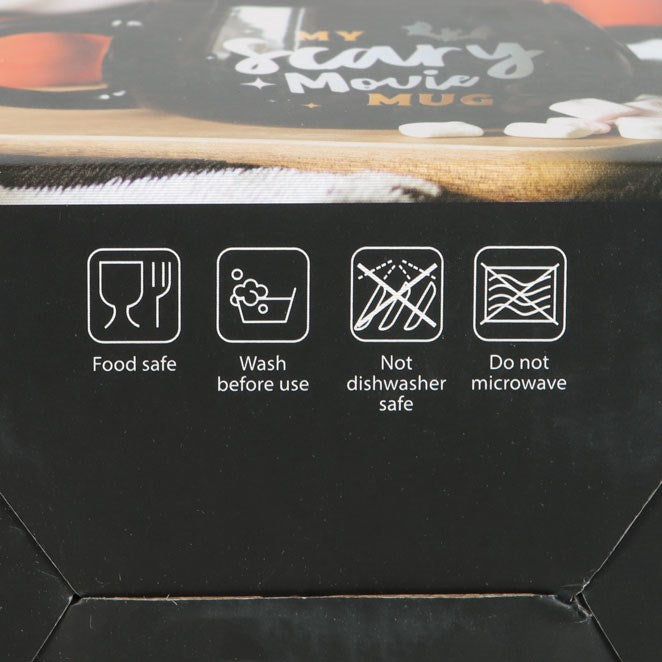 This Halloween themed mug is sure to get everyone excited for a classic scary movie! Features a flying bat and crescent moon illustration with "My Scary Movie Mug" text. With a rounded design, this will be a welcome addition to any seasonal mug collection! 490ml capacity. Not microwave safe.